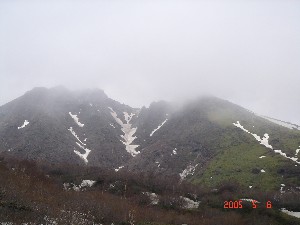 帰りに寄った那須の有料道路の終点から朝日岳。 天気が今ひとつで展望もいまいち。気温も10度いかないぐらいで寒かった。 |