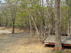 キャンプ風景。今回テントを新調。 スノコ(テントデッキ)を始めて使った事もあり設営に時間がかかってしまった。 1サイトの料金で2サイト分使わせてくれました。 |