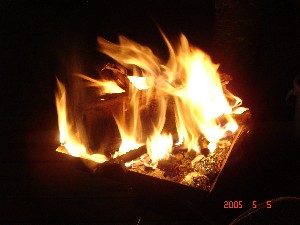 これまた今回デビューの焚き火台。 バーベキューコンロより足が短い分あったかい。 調子に乗って、そこら辺に転がってたでかい薪を入れたがいまいち燃えず。 はみ出し気味だし。 |