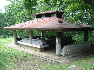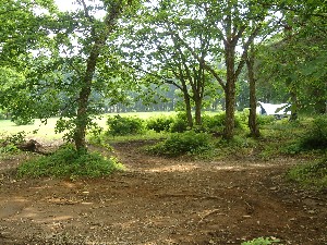 こちらが場内の様子。広い場内、どこでも設営可能。この日はうちのほかに4つほどテントが 立っていた。場内街頭も無く、電灯もトイレしかつかないのでかなり真っ暗闇。 キャンプ場だけど静かな山の中で野趣溢れるキャンプが出来ること。 |