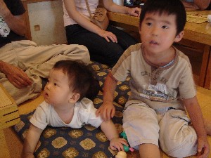 強清水の蕎麦屋でのツーショット。子供が大きくなるのは早いなー。 |