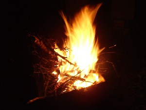 本日の焚き火。薪はあまりいいのが見つからないのがここの最大の難点か(笑)。 |