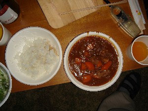 メインディッシュのビーフシチュー。煮込んだスジ肉がいい感じになってくれました。 |