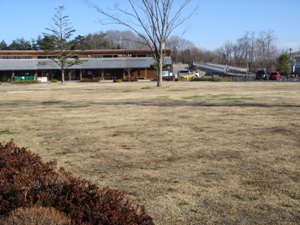 奥に見えるのがセンターハウス。温泉(400円/一人)やユニフレームのショップがある。 |