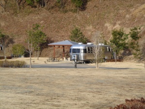 右上に見えるのが炊事棟兼トイレ。非常にきれい。お湯も出ます。 |