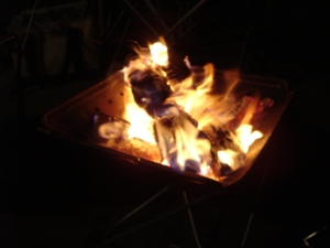 約3ヶ月ぶりの焚き火。思いのほか冷え込み、風も強かったので、焚き火の暖かさがありがたい。 |