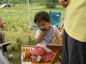 焼き芋に夢中。そんなに怖い顔しなくても誰も取りませんよ〜。 |