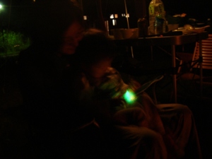 じいからもらった光るおもちゃに見入るユン。見上げれば満天の星空。 夜の闇もまたキャンプの楽しみ。 |