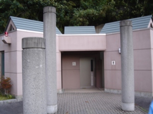 サイトから炊事棟までは坂を登って行く必要あり。炊事棟の上にトイレ。 |