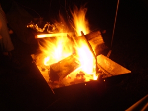 寒い夜には欠かせぬ焚き火。 |
