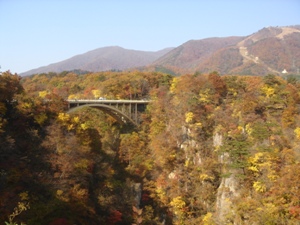 紅葉真盛りの鳴子峡。