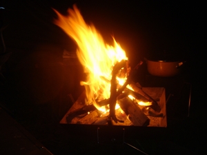 焚き火も久しぶり。浜辺で拾った焚き木もよく燃えてます。 |