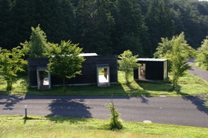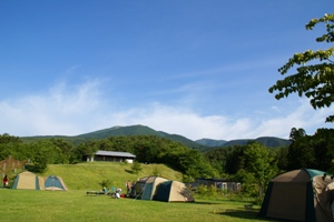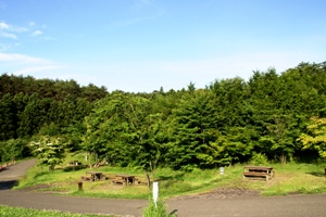 フリーサイト全景。皆さん真ん中には張りづらかったのかサイトの周りをテントで 囲った感じになってた。 裏側に下りたところに駐車場がある。 |
