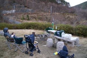 滞在記 “ユン、誕生日どこか行きたい?”“キャンプ行きたい。” “泊まるキャンプ?”“泊まるキャンプ行く。”いやー、順調に成長してます(笑)。 第1日 12月半ば、だいぶ寒くなってきたがユンの誕生記念とルーフテントの使い心地チェックのため久しぶりの 一泊キャンプに出発。なるべく暖かいところがいいということでいわき方面を目指す。ほんとは 海沿いに行きたいんだけど、あまりいいキャンプ場が思いつかないので結局小玉ダムに到着。 約一年ぶりの小玉ダム、12月ということで誰もおらず貸し切り状態。 まずはテントサイトに行く前に対岸のアスレチック広場でユンはひと遊び。 ユンにちょうどいいぐらいの遊具。一通り自分で登ったり滑ったり、ちっとは成長しておるようです。 あとはオムツが外れてくれればいんですけどねー、3才になられたユンさん。 子供たちを遊ばせている間にちょいと設営作業。今回はルーフテントを使うため設営作業もあっさり終了。 テントの設営時間1分・・・楽ちんですなあ。全員寝れるほど広くないので大人1人は車中泊。キャンプとは ちょいと別物になってる感もありますが、たまには(?)いいでしょ。そういえば設営作業中にパトカーが やってきた。“寒い時期にやってて珍しいんで来てみました。あ、ここはキャンプしていいとこなんで いいんですよ。”などとおっしゃってたが、ちゃんと見回ってるんですねえ。火を熾すとなると 許可されてる場所でないと怒られるんでしょうね。火事など起きても大変ですし。 そんなこんなのあと嫁さんと子供も合流して夕食の準備。本日は焼肉と焼き芋、野菜スープ。 相変わらず代わり映えしませんな。メインが焼き物でないの前回の大池公園のビーフシチューぐらいか? 暗くなるのも早く、早めに食べ始めたけどあっという間に真っ暗。こっちがなかなか燃え上がらない焚き火と 格闘している間に空を見上げていた嫁さんは“あ、流れ星!”を連発。寒い夜ですが、“夜空に星が綺麗”でした。 焚き火が消えてきたところで屋上テントで就寝。 第2日 外は氷点下だったが寝袋の中は暑いぐらい。マットも普通にベットだし、ちょっと狭いけど寝心地いいなあ・・・ と寝ていたのだがどうもユンの様子がおかしい。頭に手をやると熱いではないか。そういえば夕食の準備中に 外で寝ちゃったんだよねー、ユン。それでかどうかは分からんが、ともかくユンがキャンプで熱を出すのは初めてのこと。 とりあえず風邪薬を飲ませたりタオルを頭に載せたりして朝まで様子見。 3人が寝ている間にとりあえず撤収準備。最低気温は-3℃と冷え込み地面はカチコチ。霜柱がしっかり立ってた。 対岸で6時前から車が数台停まってた。朝釣りでもする方たちなんでしょうか、9時ぐらいにはみんないなくなってた。 とりあえず朝食を食べてから撤収。ユンの熱はだいぶ下がったもののボーとしてる感じ。でも前日から水族館に行くと 言ってたおかげで水族館、水族館とのたまうのでちょっと寄ってから帰宅。なんともユンには苦しい誕生日と なってしまった。前より風邪をひきやすくなったようなユン、そういう時期ならいんだけど大丈夫かねえ。 2007.12.28記 過去の小玉ダムキャンプはこちら 06年10月8,9日 小玉ダム |