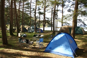 ロケーションのいい浜辺の松林がテントサイト。 |