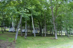 テント台もあるがどこにでも設営可能。 ただし全体的に傾斜地なので張る場所は選ぶ必要あり。 |