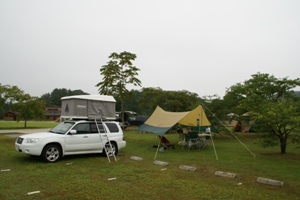 滞在記 “今週末、天気悪そうだね。”“ルーフテントの出番かねぇ。”“あ、気球が飛ぶみたいだよ。” “いいねー。”“じゃ、そういうことで。” 第1日 午前中郡山駅の車両基地まつりを見物。入場料無料にしてミニSLに乗れたり日頃見れない基地を見学したり、 スタンプラリーで景品もらったりと鉄道好きのユンにはかなりお得なイベント。基地で弁当を食べてから 次なる目的地、エコキャンプみちのくに出発。日曜日に気球の体験搭乗会がみちのく湖畔公園で開催されるのが お目当て。雨天中止ということなので天気が持つかどうかを心配しながら曇天のもとキャンプ場へ向かう。 16時前にキャンプ場に到着。管理棟で手続きをして場内へ。今回利用するフリーサイトは場内の一番奥で フリーサイトとは言っても駐車スペースの横に張ればオートサイトと同じ状態。エコキャンプみちのく、 人気のキャンプ場らしく週末は予約で埋まることも多いらしい。この日もそこそこテントが張られていたが駐車場が 埋まるほどではなく、まずまずの場所を確保。雲行きが怪しいのと設営の楽さを求めて今回はルーフテント。 それにしてもキャンプ場内すべての施設が非常に綺麗。トイレも家より綺麗なんじゃないかというぐらい。 水道からはお湯出るし、場内には滞在中入り放題の温泉があるし・・・ほんと“超”高規格キャンプ場ですな。 夕食の準備中、子供たちはフリーサイトの真ん中にある広場で一遊び。滑り台や砂場もあり家族連れには 過ごしやすい。もうちょっと子供が大きければ子供を遊ばせといて大人はのんびりってのもできそう。 でもって夕食は焼肉とスープといういつものメニュー。我が家基本肉好きですから(笑)。 夕食後温泉に入り、風呂上りの一杯を売店に買いに向かうと10分遅刻で閉店済。ちょいと残念だったが、 しょうがないのでおとなしく就寝。飲み過ぎ注意ってことですかね。 第2日 翌朝、6時頃起床。寝るのが早いので早起き。9時前には整理券がなくなることがあるいうので出遅れてはいかんと 嫁さんや子供も7時前には起こして朝食をいただく。撤収も後回しで8時過ぎに会場の風の草原に到着。 ・・・誰もいない。結局9:00の整理券を配り始める時間になっても定員の100人には程遠い2〜30人しか人はおらず、 そんなに急ぐ必要は無かったのかも。天気が悪かったせいかもしれんが、でもそもそもキャンプしてない場合、 公園の開場が9時なので普通は9時前に並べないような。キャンプしてる人だけで定員になっちゃうことがあるって ことなんでしょうか。 早くから待ってたので気球の準備の一部し始終を見学。初めて見たので準備風景もなかなか面白かった。 最初横倒しで膨らましてから立てる時まで人が抑えてるんだが、人がずりずり引っ張られてたりして。 へーと思って見てたんだが待っている間に雨がぽつぽつ。中止にならないか冷や冷やしながら搭乗開始を 待っているとようやく気球が浮上。搭乗順は当然の一番で、無事気球に乗り込み空中遊覧。曇ってたので 蔵王の山々は見えなかったもののなかなかの見晴らし。浮上するときにバーナーが点火する音が結構でかくて、 リョンは怖がってた。風が無かったので揺れなかったけど揺れると結構怖いんだろうね。 無事気球に乗れたのでサイトに戻って撤収作業。撤収作業中に雨がひどくなってきて、帰りがけに 気球会場を通りかかったときには気球は横倒しで中止になっちゃってた。わざわざ来て中止だとショック だけど雨や風に弱いのが気球なんですね。キャンプ場からみちのく湖畔公園の南地区に移動して公園で 一遊びし、昼食を食べてから帰宅。キャンプ場に入るのに入場料取られるけど、温泉とみちのく湖畔公園の 入場料、駐車料金込みなので、公園で遊ぶつもりなら結構お得かなあ。 2008.9.27記 |