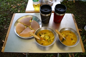 ホットケーキに前日の残り物シチュー。 子供が寝ているあいだにゆっくり朝食。 |