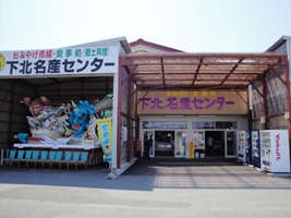 下北最大規模の観光ドライブインらしい下北名産センター北彩市場。生鮮食料品を期待したのだが それは無し。 |