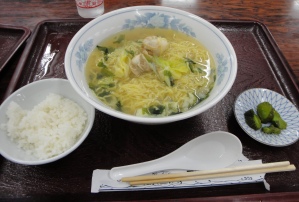 下北名産センターの2階にある食堂で食べたホタテラーメン。陸奥湾はホタテの産地らしい。 |
