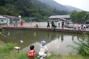場内にある鯉の釣り堀。やりたそうな子供達。