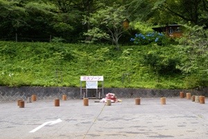 場内では花火禁止で、駐車場の脇でやることになるよう。 |
