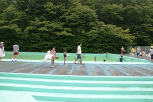 奥側にテニスコートが4面。 |