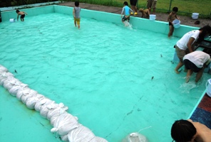 プールの次にマスのつかみ取り。