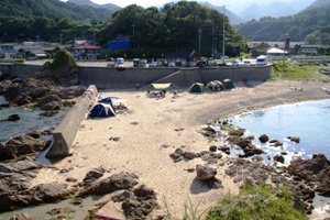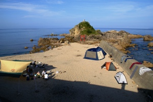 正式なキャンプ場ではなさそうだがトイレに洗い場、砂浜と十分。海水浴シーズンは混むんだろうね。 |