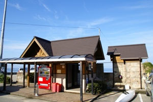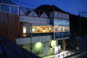 道の駅夕日会館。2階のレストランから夕陽を見物。