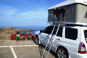 駐車場したが砂浜になっていてキャンプをしている人達も。