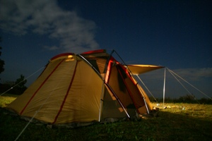 滞在記 “WILD-1、20%還元セールだってね。”“ふーん。”“これから寒くなってくるよねー。”“そうだねー。” “これは買い時じゃない?”“いんじゃない。”・・・意外と乗り気じゃん。 第1日 なんとかなるさのキャンプ記録もついに100泊目。100泊記念(?)に購入した久し振りの大物、 リビングシェルを載せて出発。初張りの場所は三株高原キャンプ場。三株山の山頂下の高台にある 小さなキャンプ場で、細い山道を走って行った所にある寂しい感じもする所。誰もいない草地の 真ん中に陣取って初張り開始。説明書を見ながらえっさほいさと組み上げる・・・でかい。 アメニティードームより背が高くなったこともあり、風にあおられて飛ばされそうになりながら なんとか設営。中にインナールーム入れるとスクリーンタープというよりはでかいテントであるが なかなかかっこいいのうと自己満足(笑)。 シェルを張って他の道具を出していたら焼き網がないことが判明。網無しでは夕食が食えぬということで 結局往復一時間かけてコメリまで買いに行く羽目に。キャンプ場から夕陽を拝めるいい時間に下山して しまったのが残念だったが、花より団子というかなんというか。100泊やっても忘れ物が多いのは全く 変わりません。。夕食は網が必須の焼き鳥と焼肉。こちらもいつも通りです。思ったより冷え込みもなく、 十五夜のまん丸お月さまを見ながら静かな山でのひととき。 第2日 翌朝、7時ごろ起床。前日、管理人さんと思われる方がイノシシが出るよと言って帰ったのだがイノシシでは なくリョンの度重なる夜泣きが出たおかげで寝不足。朝食を食べた頃に再び管理人さんが訪れて アケビと山栗を持ってきてくれた。どうやらキャンプ場周辺に生っているようで、あっちにあるよと教えてくれた。 炊事棟の水周りは先週修理されたようで、沢水なんで注意してねとかトイレの電気つけておくねとか 何かとご親切でした。無料のキャンプ場、こういう方達に支えられてるんですね。トイレもぽっとん式ながら きれいだったし、電気もつき快適です。欠点は見晴しがひらけているのと反対側になんだかよくわからない 施設があり、それが廃墟っぽくなってて寂しさを増幅する点ぐらいかと。 撤収の合間に周辺を散歩したり、ボール遊びしたりでのんびり過ごし、11時過ぎに下山。 晴れた日には富士山も見えるという三株山の山頂までは30分ぐらいとのことだったので歩こうかとも 思ったのだが、結局今回は行かず。また今度ですね。久し振りに周りに何もなく誰もいないキャンプ場で 当初寂しいと言っていたユンも途中からは何も言わずリョンと一緒に遊んでた。兄弟仲良くやってちょうよ。 2009.10.10記 |