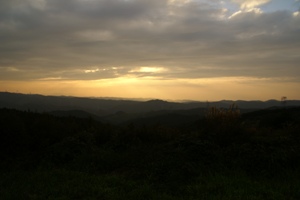 夕焼け間近に設営終了。