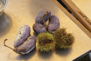 親切な管理人さんが持ってきてくれたアケビと山栗。