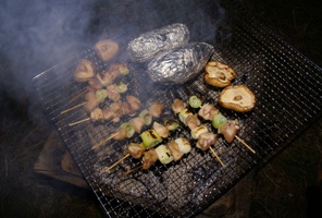 ゲットして来た網で焼鳥タイム。