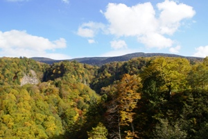 | 西吾妻スカイバレー、まさに紅葉が見頃でそこらじゅうが撮影スポット。 |
