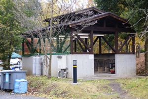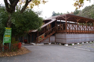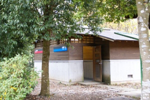 キャンプ場の管理棟兼売店、トイレ、コインランドリー、シャワー棟。