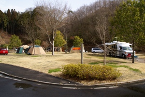 キャンピングカーサイト。駐車スペースがキャンピングカー用に広い以外はオートサイトと同じ雰囲気。 |