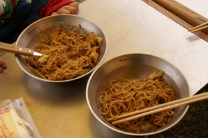 | 昼食もキャンプ場で。今回はカップ麺ではなく、嫁さん調理。子供たち焼きそば好きだねえ。 |