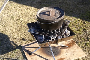 | 今回のサイト風景。風が強く、この後、前部の跳ね上げポールが曲がってきたので撤去。 強風注意報発令のため、サイドのロープも補強。この時期は風強いね。 |