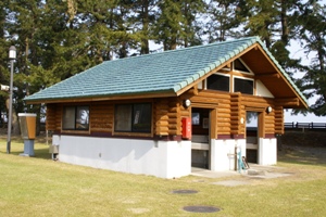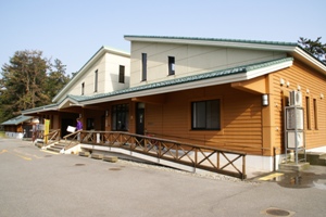 | 管理棟。コインランドリーにシャワー、売店、インターネット完備。 |