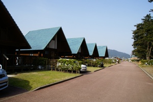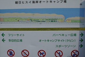 | こちらはオートサイト。道路の両側に生垣に区切られた芝生のサイトが並ぶ。増穂浦と似てるが、 こっちの方が公園度が高い印象。 |
