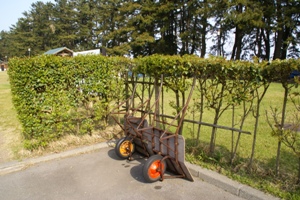 | フリーサイト横の駐車場からリヤカーで運搬。3台しかなかったので混雑時期は争奪戦か? |