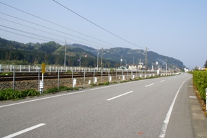 | サイトの横に線路、その隣に国道8号線が走るため、夜は音が気になる。 |