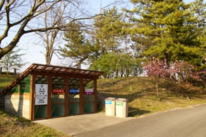 | ゴミ捨て場。分別が細かく分かれている。 |
