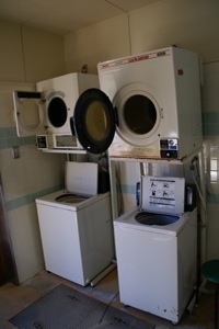 | オートサイトの炊事棟内にあるコインランドリー。フリーサイト利用者も使用可で一回200円。 |
