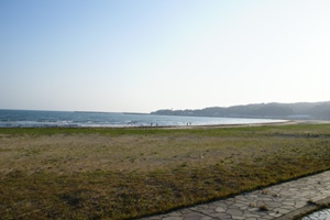| 増穂浦海岸。位置的に海に沈む夕陽は見えないが日本三大小貝海岸だけあって貝殻いっぱい。 |