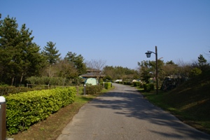 | こちらはオートサイト。道路の両側に区画サイトが並ぶ。広さは十分。各サイトが生垣に区切られている。 |