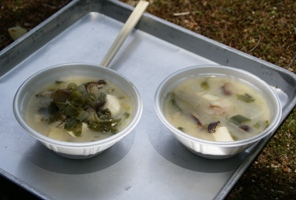 歩いて疲れた後に高原汁とお祭りで売っていた山菜ご飯やイナリを頂く。