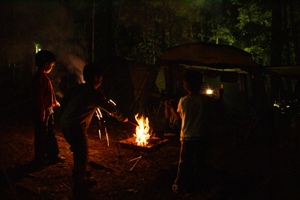 クマさんが買ってきた花火で遊ぶ子供たち。